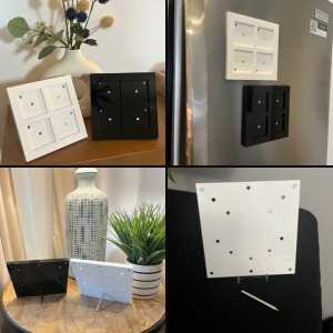 Designed to elevate your favorite photo tiles, our quality frames add weight, clarity, and style to your favorite photo tiles. The frame itself is magnetic, so you can hang it on any metal surface—no hardware needed—or display it on a table with the included steel peg. Built to last, just like the memories they hold.
